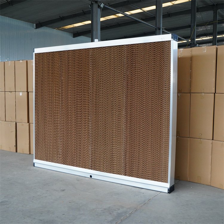 系统的降温过程是在其核心——湿帘纸内完成的。在波纹状的纤维纸表面有层薄的水膜,当室外的干热空气被风机抽吸穿过湿帘纸时,水膜中的水会吸收空气中的热量后蒸发,带走大量潜热,使经过湿帘纸的空气温度降低,经过这样处理后的凉爽湿润空气进入室内。与室内的热空气混合后,通过风机排出室外。